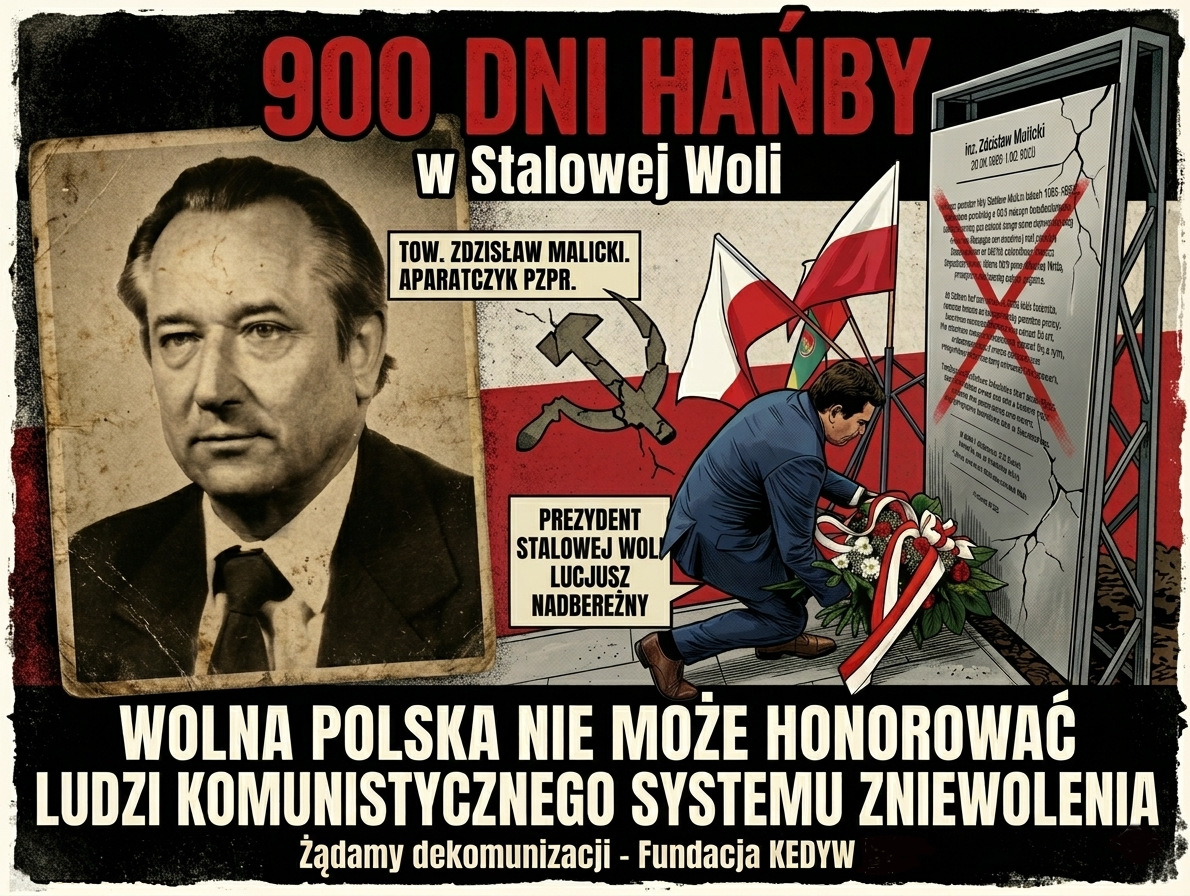 Mija 900 dni od chwili, gdy w Stalowej Woli prezydent miasta Lucjusz Nadbereżny (PiS) odsłonił wraz z byłymi komunistami ulicę i pomnik na cześć towarzysza Zdzisława Malickiego – wysokiej rangi aparatczyka komunistycznego i oddanego członka zbrodniczej Polskiej Zjednoczonej Partii Robotniczej (PZPR).