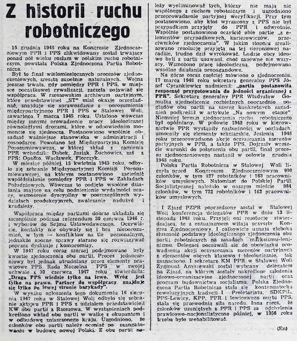 15 grudnia był wielkim świętem w Polsce Ludowej. Tego dnia w 1948 roku doszło do połączenia Polskiej Partii Socjalistycznej (PPS) z komunistyczną Polską Partią Robotniczą (PPR). W wyniku tej fuzji powstała zbrodnicza Polska Zjednoczona Partia Robotnicza (PZPR), odpowiedzialna za liczne represje wobec konspiracji niepodległościowej, mordy oraz delegalizację wolnych organizacji, w tym NSZZ „Solidarność” w stanie wojennym.