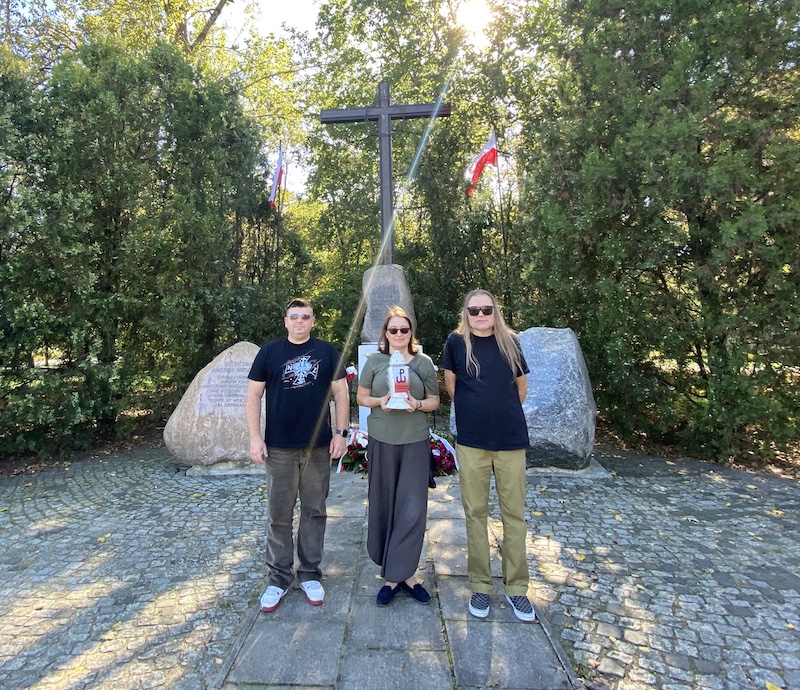 W uczeniu naszej bohaterki prezesowi Markowi Wróblewskiemu i wiceprezesowi Mariuszowi Szeferskiemu towarzyszyła wnuczka Krystyny Bełżyńskiej Pani Maria Bielicka, która oddała hołd swojej poległej babci. Pani Maria pokazała nam miejsca związane z ostatnimi godzinami życia swojej babci i gdzie dzielnie bronili się powstańcy w ostatnich godzinach walk na warszawskim Czerniakowie.